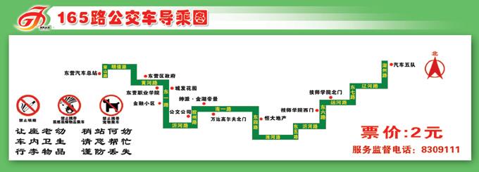 2、165路汽車五隊(duì)發(fā)車經(jīng)湖州路→遼河路→東七路→運(yùn)河路→東六路→沂河路→東五路→濰河路→東四路→南一路→膠州路→沂河路→東一路→黃河路→明鏡路→蒙山路→汽車總站,票價(jià)不變。