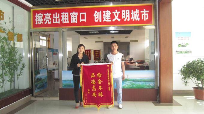 5月1日晚,家住史口鎮(zhèn)的郭峰先生在西城淄博路就餐后搭乘魯ET1980號(hào)出租車(chē)返回東城東三路附近下車(chē),下車(chē)時(shí)不慎將隨身攜帶手提袋里的手機(jī)、銀行卡等證件及其他物品遺失在出租車(chē)上,因下車(chē)未取出租車(chē)發(fā)票,一時(shí)無(wú)法聯(lián)系司機(jī)。次日出租車(chē)駕駛員李懷芬將撿到的手提袋主動(dòng)交給運(yùn)營(yíng)中心,后經(jīng)運(yùn)營(yíng)中心工作人員與乘客取得聯(lián)系,將出租車(chē)司機(jī)李懷芬撿到的手提袋物歸原主。事后乘客郭峰送來(lái)一面錦旗對(duì)出租車(chē)駕駛員李懷芬表示感謝。