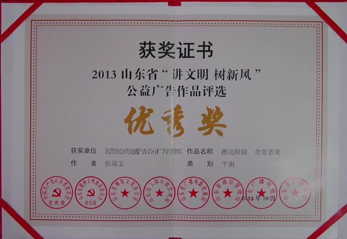 在剛剛揭曉的山東省第十四屆廣告節(jié)“講文明,樹新風(fēng)”公益類廣告作品評(píng)選中,市公交公司廣告部張瑞文設(shè)計(jì)的反腐倡廉主題作品“擦亮眼睛 勿食惡果”,獲得優(yōu)秀獎(jiǎng),這是繼本界廣告節(jié)“泰山杯”作品評(píng)選獲獎(jiǎng)之后,市公交公司廣告部又一次獲獎(jiǎng)。市公交公司廣告部重視設(shè)計(jì)人員創(chuàng)作水平的提高,通過多渠道、多方式提高設(shè)計(jì)人員的創(chuàng)作水平,至今,已在省級(jí)評(píng)選中多次獲獎(jiǎng),一批批優(yōu)秀的作品正不斷涌現(xiàn)。