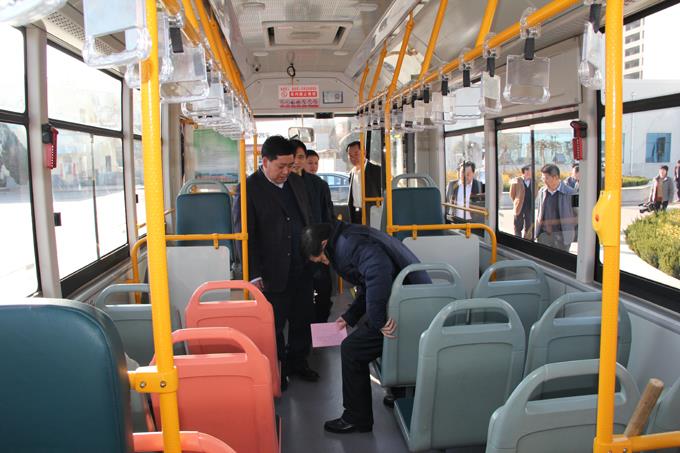 3月14日下午,市人大常委會副主任閆樹信帶領(lǐng)人大環(huán)城委調(diào)研組一行在市交通運輸局局長燕乃敏等相關(guān)領(lǐng)導(dǎo)的陪同下,到市公交公司進行了調(diào)研指導(dǎo)。調(diào)研組一行來到東營公交智能調(diào)度指揮中心,首先由市公交公司經(jīng)理朱新民同志簡要介紹了近年來東營公交各方面的工作,而后調(diào)研組一行來到8309111公交服務(wù)中心,進行了現(xiàn)場觀摩。最后,調(diào)研組一行來到車場,現(xiàn)場觀摩了公交車內(nèi)的各項服務(wù)設(shè)施并提出了寶貴意見和建議。
