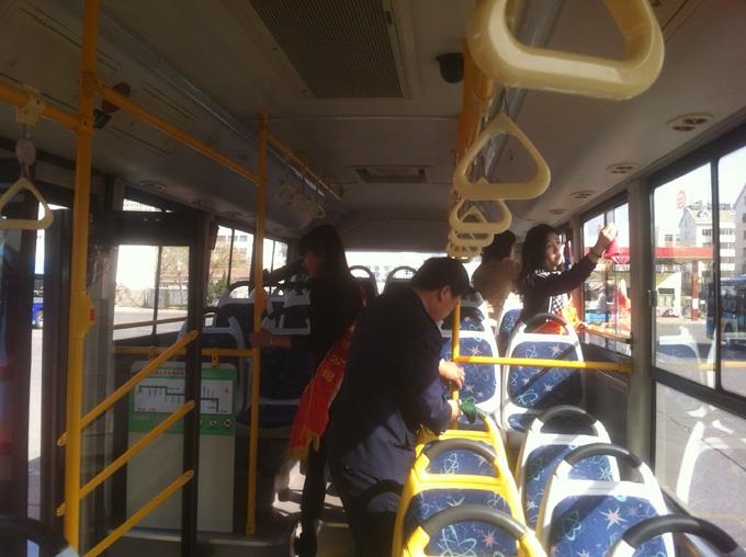 來自東營市職業(yè)學(xué)院會(huì)計(jì)學(xué)院的22名大學(xué)生和汽車一隊(duì)職工共計(jì)34人,分成兩個(gè)小組,一組乘坐103路公交車幫助疏導(dǎo)乘客,為特需乘客服務(wù);一組幫助駕駛員打掃車輛衛(wèi)生,清潔服務(wù)設(shè)施。本次活動(dòng)受到乘客們的廣泛好評,同時(shí)也提升了大家的奉獻(xiàn)意識和社會(huì)責(zé)任感,進(jìn)一步弘揚(yáng)了雷鋒精神,培養(yǎng)了大家關(guān)愛他人、服務(wù)社會(huì)的優(yōu)良品質(zhì)。