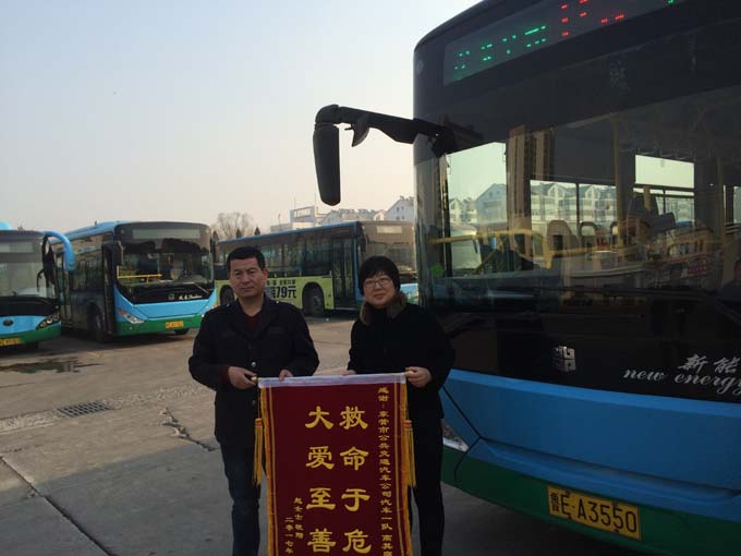 3月11日上午,市民趙女士拿著一面寫有“救命于危、大愛至善”的錦旗來到市公交公司汽車一隊,感謝152路駕駛員高其庭師傅見義勇為的高尚品德。據(jù)車隊了解得知,3月2日15時10分,高其庭駕駛魯E81532號車執(zhí)行從公交公司至火車站的152路任務(wù),當(dāng)車行駛至科英電子公司時,突然聽到有乘客說有人暈倒了,高其庭立即停車查看,發(fā)現(xiàn)一位阿姨臉色發(fā)黃、口吐白沫,情況十分危急。他立即拔打了120與急救中心聯(lián)系,同時將情況告知車隊。在征得車上乘客同意的情況下駕車趕往人民醫(yī)院,途中由其老伴和一名穿紅色上衣的好心乘客照顧。到達市人民醫(yī)院急救中心后,高其庭與病人老伴協(xié)同醫(yī)護人員將其送下救治。該乘客就是趙女士的母親。