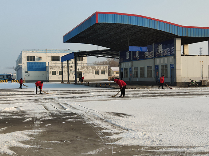 經(jīng)過(guò)一個(gè)多小時(shí)的奮戰(zhàn),大家將站內(nèi)的主要出入口和道路的積雪全部清掃干凈。雖然大家弄濕了鞋子、弄臟了衣服,但是看著為客戶開(kāi)辟的這條暢通之路,每個(gè)人臉上都洋溢著自豪的笑容。