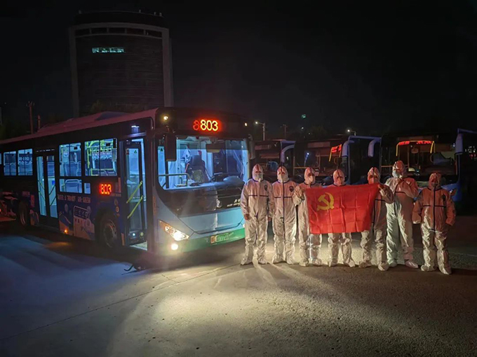 公司保修一廠副廠長(zhǎng)商同衛(wèi)凌晨2點(diǎn)半被電話驚醒,“根據(jù)防疫工作需要,抓緊組織咱們的人員凌晨3點(diǎn)前到公司就位,改裝轉(zhuǎn)運(yùn)車輛”,電話那頭傳來(lái)的是保修一廠負(fù)責(zé)人的聲音。商同衛(wèi)連忙從床上爬起來(lái)趕往公司,路上不停打電話通知其他同事,半個(gè)小時(shí)后保修一廠人員全部到位,他們與同樣接到任務(wù)的保修二廠的同事們一起,連夜完成了300臺(tái)公交車物理隔離改造,確保了車輛全部到達(dá)隔離轉(zhuǎn)運(yùn)條件。與此同時(shí),各車隊(duì)微信群也熱鬧起來(lái)。“疫情當(dāng)前,公司黨委號(hào)召連夜組建應(yīng)急轉(zhuǎn)運(yùn)隊(duì)伍,請(qǐng)大家根據(jù)個(gè)人家庭實(shí)際情況報(bào)名接龍”,這段話在公司各車隊(duì)的微信工作群一經(jīng)發(fā)出,就迅速得到了回應(yīng),也許是9月29日晚個(gè)別小區(qū)的封控讓大家提前感受到了疫情緊張的氣氛,此時(shí)雖已凌晨,但很多同志并未入睡?!瓣?duì)長(zhǎng),我第一個(gè)報(bào)名”“我是黨員我先上”“算我一個(gè)”,大家紛紛響應(yīng)公司黨委號(hào)召,踴躍報(bào)名。很快,由東、西城各車隊(duì)300名駕駛員和300臺(tái)完成物理隔離改裝的公交車組成的應(yīng)急轉(zhuǎn)運(yùn)隊(duì)伍9月30日早6時(shí)前就組建并按區(qū)域集結(jié)到位。