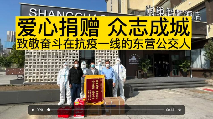 近日,在我市疫情防控的關鍵時刻,東營區(qū)群眾代表郭永軍捐贈一批愛心物資,用于疫情防控工作,為抗疫工作貢獻自己的力量,并向奮戰(zhàn)在抗疫一線的東營公交人送錦旗表示感謝,用真情和愛心傳遞社會正能量,助力疫情防控工作。