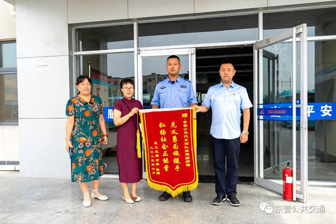 6月28日,側(cè)翻的老年代步車(chē)傷者的家屬一行來(lái)到東營(yíng)市公交公司汽車(chē)四隊(duì),他們帶著錦旗和防暑物資來(lái)感謝在危急時(shí)刻救出被困人員的東營(yíng)公交駕駛員孫建強(qiáng)師傅。