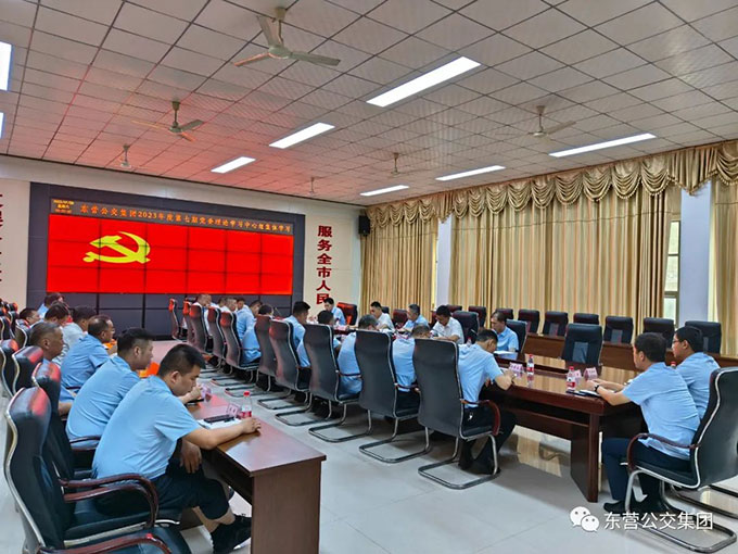2023年7月29日上午8時30分,東營公交集團在辦公樓一樓會議室組織2023年度第7次黨委理論學習中心組集體學習,趙龍同志主持會議并講話。