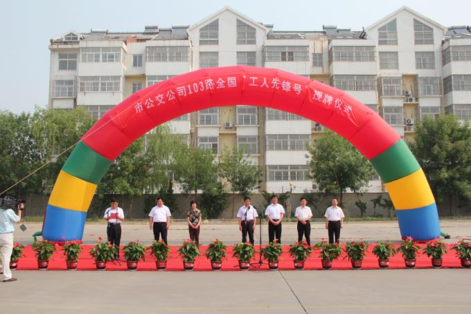 6月4日上午,中華全國(guó)總工會(huì)命名市公交公司103路車組“全國(guó)工人先鋒號(hào)”授牌儀式在市公交公司舉行。