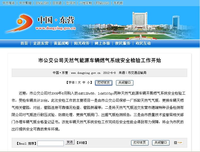 2012年6月8日東營市政府網(wǎng)站報道