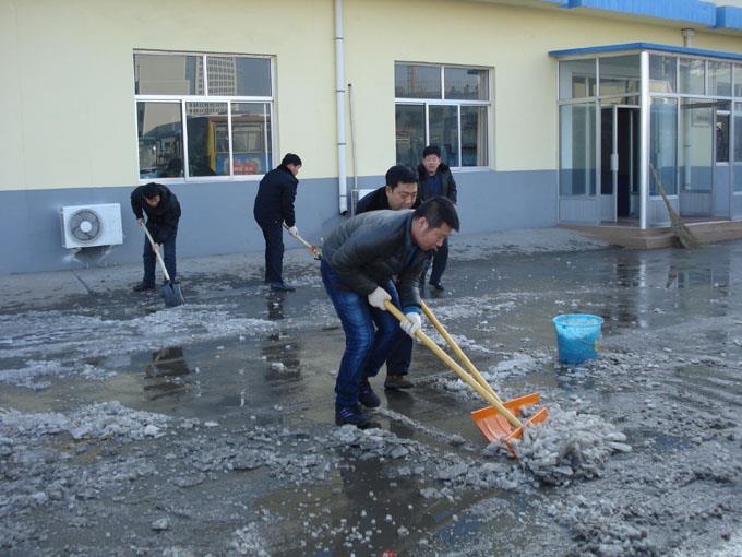 在清雪過程中,同志們不畏嚴(yán)寒,破冰除雪,干勁高漲。在大家的共同努力下,僅用兩個(gè)小時(shí)便將車隊(duì)門前積雪清掃干凈,用自己的勞動(dòng)為車隊(duì)全體人員的安全出行提供方便,真正以實(shí)際行動(dòng)落實(shí)十八大精神,為營造和諧公交貢獻(xiàn)自己的力量。