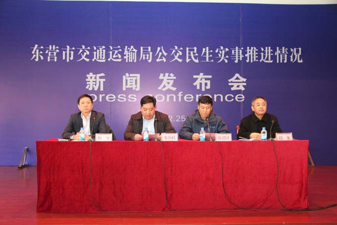 12月25日上午9點(diǎn)30分,東營(yíng)市交通運(yùn)輸局公交民生實(shí)事新聞發(fā)布會(huì)在市公交公司舉行,主要是通報(bào)2016年度公交各項(xiàng)民生實(shí)事工作的推進(jìn)情況。東營(yíng)市交通運(yùn)輸局黨委委員、副局長(zhǎng)燕渭澤、東營(yíng)市公交公司副經(jīng)理趙龍、北京中航訊股份科技有限公司總經(jīng)理倪軍以及來(lái)自東營(yíng)電視臺(tái)、東營(yíng)日?qǐng)?bào)社、大眾網(wǎng)、齊魯晚報(bào)、黃河口晚刊等9家新聞媒體記者出席了新聞發(fā)布會(huì)。會(huì)議由東營(yíng)市公交公司黨委書記、經(jīng)理朱新民主持。